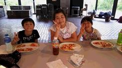 今日は 朝食前に吊り橋までのハイキング、たっぷり朝食を食べたあとに生地から作るピザ作りに挑戦です。とてもおいしいピザができあがりました。残さずきれいに食べてすべての活動が終了しました。
