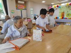 6月5日に5年生と松寿会の皆様との交流会、「ひまわり交流会」がありました。グランドゴルフを教えていただき、一緒にゲームを楽しみました。ゴルフの後は5年生が家庭科で学習したことを活かして、お茶を入れてみなさんとお話を楽しむことができました。