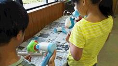 活動のあとは初めての食事です。食堂は貸し切り状態だったそうです。食堂でのルールやマナーをしっかり学習しました。食事の後は「ふくろうの絵付け」の活動をしました。かわいらしいふくろうができました。