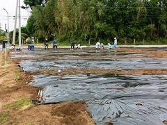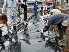 昨日の午前8時半から、PTAのひまわり委員と総務部の皆さんが、手際よくひまわり畑のマルチかけと穴開けを行いました。これで子どもたちは種まきができます。大変お世話になりました。