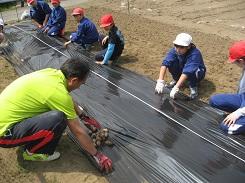おいしいけんちん汁ができるように、たくさんおいしいサトイモができるように,5、6年生で植え付けをしました。