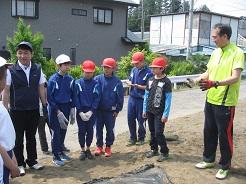 矢板市暮らし安全課環境課の交通指導員小野崎さんと片岡駐在所の警察官遠藤さんから、横断歩道の渡り方、ふみきりの渡り方をご指導いただきました。
