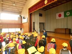 矢板市暮らし安全課環境課の交通指導員小野崎さんと片岡駐在所の警察官遠藤さんから、横断歩道の渡り方、ふみきりの渡り方をご指導いただきました。