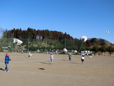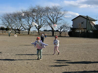 1月31日(月)の5校時に1年生が生活科の学習で「凧揚げ」を第2校庭で行っていました。生活科の学習で作った自分の凧を揚げたのですが、どの児童もやや強めの風に合わせて、上手に凧を揚げることができていました。糸の長さを調節しながら凧が落ちないように工夫しており、楽しそうに凧揚げをする姿がありました。