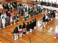 天候に恵まれ、新入生14名は、全員元気に登校しました。入学式は、落ち着いた雰囲気の中無事行われ、最後に、新入生と保護者で記念写真を撮りました。明日から登校班で来ることになりますが、車に気をつけて元気に登校してください。