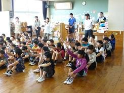 校歌が、♪~片岡 乙畑小学校(かたおか おっぱたしょうがっこう)~♪だったのが、町村合併で ♪~矢板市 乙畑小学校(やいたし おつはたしょうがこう)~♪ に変わったことや、国道四号は日本一長い国道だったが砂利道で砂埃がすごかったことに加えて、暖房が石炭を燃料とするだるまストーブだったこと、プールも体育館もなかったこと等の実例を挙げながら物が豊かではなかったことについてお話なさり、これからの成長していく児童への願いをお話くださいました。