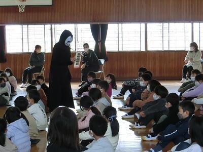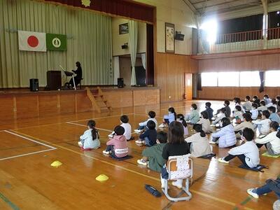 11月30日(火)に、音楽鑑賞教室を実施しました。今年度は、エレクトーン奏者の石下有美先生をお招きして全校生で鑑賞しました。オーケストラの演奏に匹敵するような演奏に徐々に子供たちは引き込まれ、思わず曲に合わせて体を動かしたり、手拍子をしたりする姿がありました。また、さまざまな演出もしていただき、演奏者と児童が一体となった鑑賞教室になりました。何より全校児童が一堂に会して、全員で楽しい時間を共有できたことが本当によかったと感じています。最後に、代表児童からお礼の言葉と花束を贈呈しました。石下先生、素敵な時間をありがとうございました。