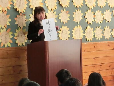まずは、校長が北陸で被災された方々へのお見舞いの言葉を述べました。