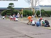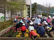 4月17日の昼休み後半は、2~6年生で花壇の清掃をしました。