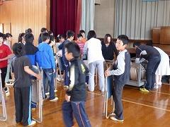 4月17日の朝は、先日のPTA総会の会場の後片付けを5・6年の児童がしてくれました。