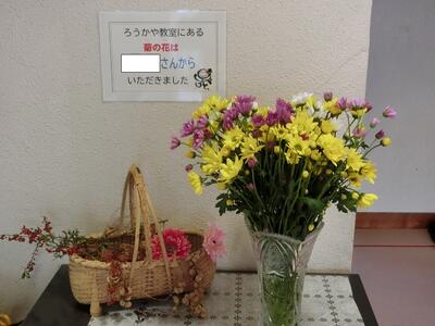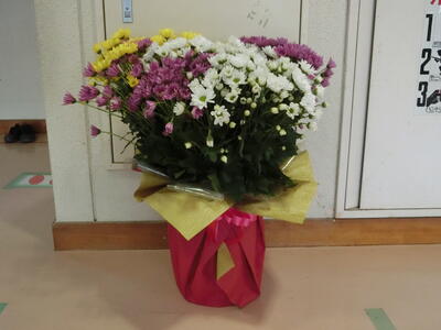12月1日(水)には感謝の集いがありましたが、本校では地域の菊農家の方からきれいな菊の花をいただいています。そのお蔭で教室や廊下にいつもきれいな菊の花が飾られています。本当に心が和みます。学校へのお心遣いありがとうございます。
