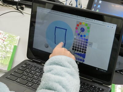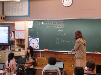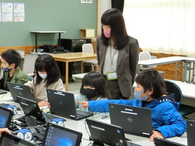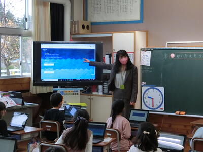 12月8日(水)に1・2・3年生が各1時間ずつICT支援授業を行いました。講師の先生をお迎えしてタブレット端末を使って各学年に応じた内容を御指導いただきました。1年生は、プログラミング学習の一環で、自分の描いた絵を動かす内容を実施しました。2年生も同様の内容で、1年生よりも一歩踏み込んで漢字の部首を動かすことで一つの漢字を作るという活動でした。3年生は、キーボードを使って文字入力する内容でしたが、ブラインドタッチをめざしての学習となりました。決まった指でキーボードを打つ練習に熱心に取り組みました。