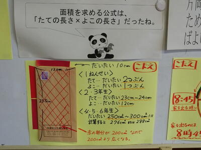 11月15日(月)から多目的ホールに設置されていた「学習コーナー・算数ワールドへようこそ」に、多くの児童がチャレンジして、自分で考えた答えを応募してくれました。2週間で締め切り、今週(12/6~)から解答が示されました。正解者には、プレゼントが用意されており、後日手渡されることになっています。生活の中に生きる算数科の学習をねらってのイベントでした。今後も教科の学習と日常生活が結び付けられるような取り組みを行っていきます。