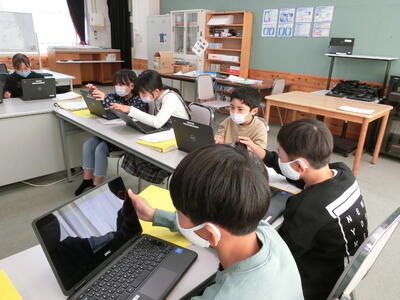 12月10日(金)に、1・2・3年生(8日に実施済)に引き続いて4・5・6年生のICT支援授業を各学年1時間ずつ実施しました。1・2・3年生同様に外部から講師をお招きして御指導いただきました。4年生は、プレゼンテーションに活用できる「パワーポイント」の作成の仕方を学びました。5年生は、動画を見て、「情報モラル」の重要性をワークシートに記入しながら考えました。6年生は、プログラミング学習の一環で、楽曲をプログラミングで演奏する方法を学びました。どの学年も真剣に、かつ意欲的に学習に取り組んでおりました。