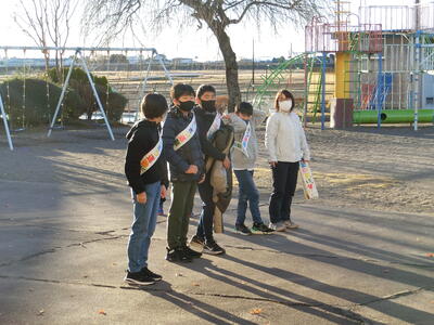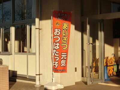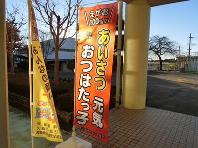 12月13日(月)から17日(金)まで、「あいさつ運動」を実施しています。今回のあいさつ運動では、少しでもあいさつ運動を盛り上げようと児童会が中心となって図案を考え、「のぼり旗」を作成しました。昇降口付近に設置しました。また、登校した代表委員が手づくりのたすきをかけてあいさつを呼びかけました。笑顔100%で、元気な乙畑っ子がますます増えるように明るい元気なあいさつを推進していきます。