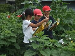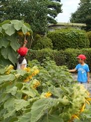 3年生は畑に蒔いたにんじんの周りの除草もがんばりました。ひまわり畑では今年の新品種「ソーラービーム」がまだ元気よく咲いていました。