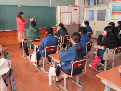 6年生全員が中学校に行き、授業参観をしたり、体育館で保護者と一緒に説明を聞いたりしました。