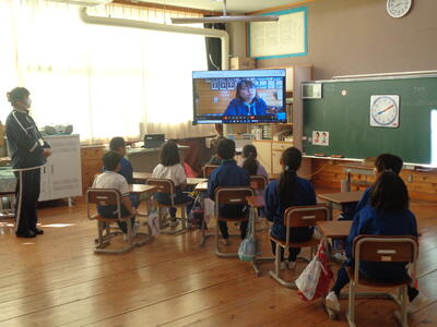 他校と合わせて3校の6年生は、緊張の面持ちでお話を聞いていました。