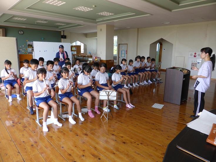 サッカー・バスケットボールは、矢板市小学校球技大会に向けての練習で、夏休み中にそれぞれ5回の練習を設定してあります。チーム編成の関係で、5・6年生の大会参加となりますが、練習には4年生も参加しています。また、合奏は、塩谷地区学校音楽祭に向けて「見上げてごらん夜の星を」の練習を5・6年生で行っています。こちらも夏休み中に練習を5回設定してあります。