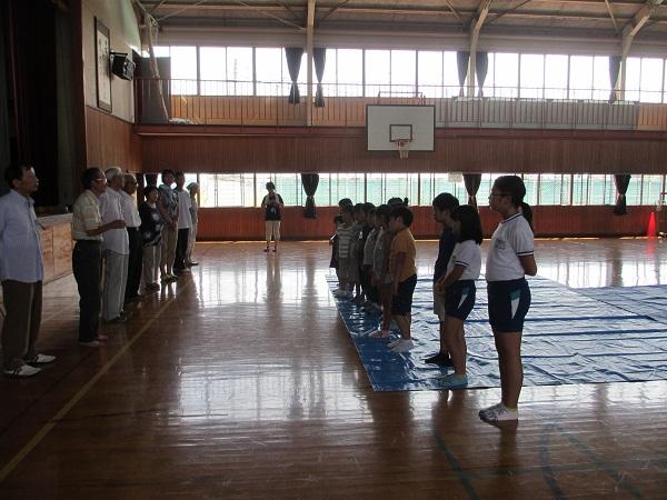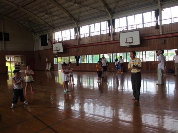 7月16日の昼休みに、運動会の紅白応援団員の練習を体育館で行いました。