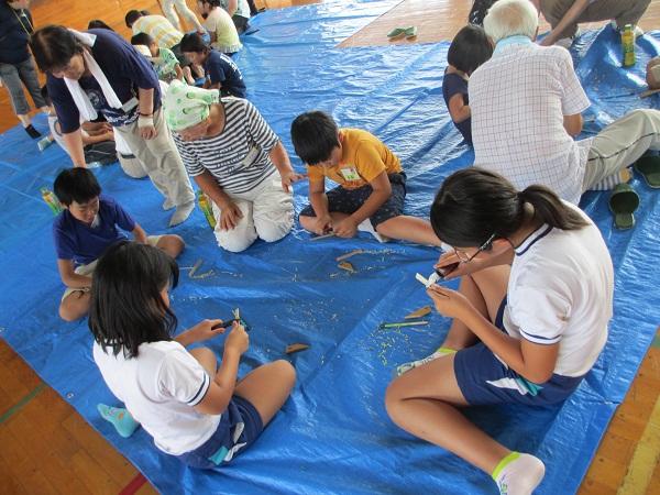児童一人一人に対し指導者が丁寧にご指導くださり、児童は、苦労しながらも製作していました。最後に児童は、講師の方が準備してくださった竹とんぼを一個ずつ戴き、気持ちよく飛ばしていました。