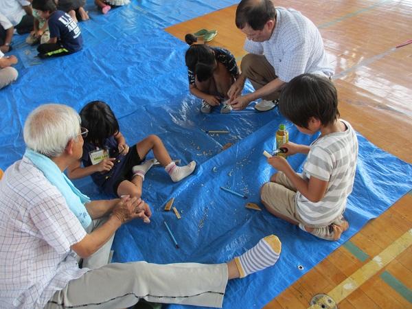 8月3日は、ひまわりスクールで竹とんぼ作りを体育館で行いました。今回は講師に矢板市ふるさと創年大学卒業生「ぶらぶらクラブ」の海瀬元之様をはじめ、多くの方のご協力をいただきながら実施しました。