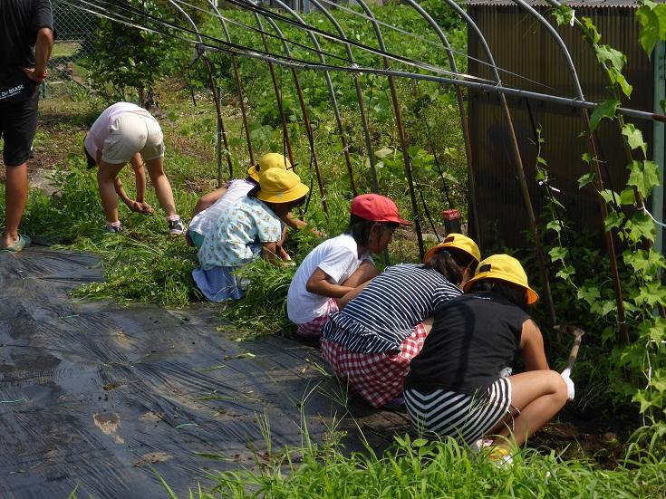 朝の会のあと、畑の除草、花壇の除草をみっちりと行いました。