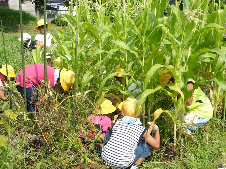 1年生・2年生のオクラやトマトも実を付けていますが、トウモロコシはこれからのようです。