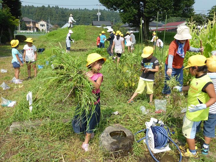 8月8日に、PTAの方々のご協力を得て、学校畑の外周を整備しました。