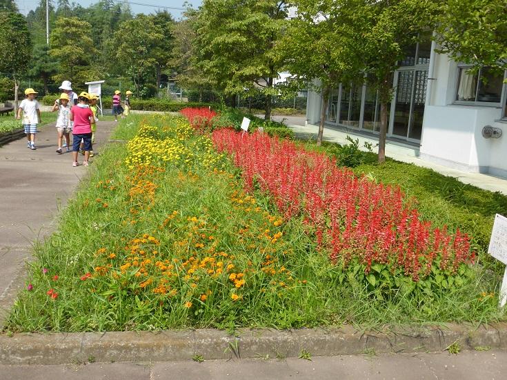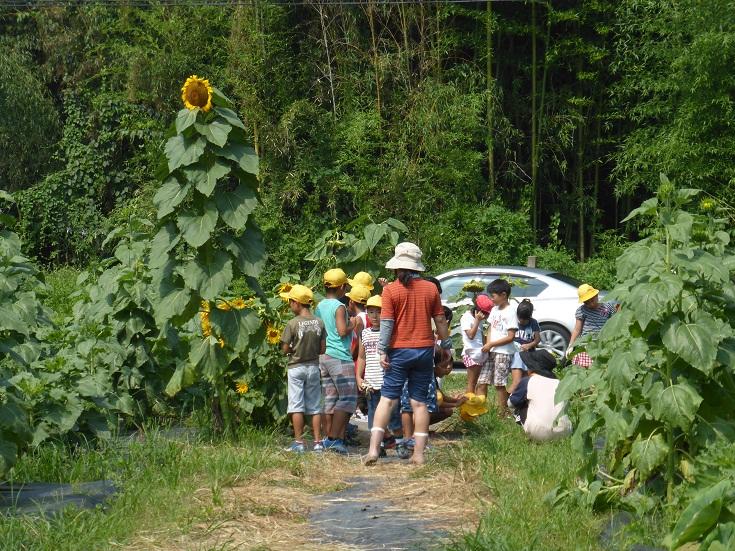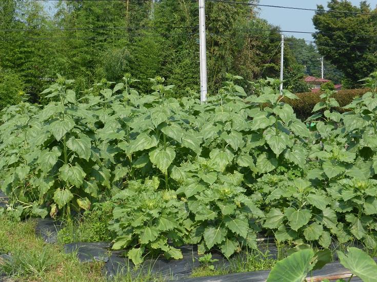 ひまわりは、予定した通りまだ花が咲いていませんが、昨年の種子がこぼれて芽生えたひまわりが、畑の中央にモニュメントのように咲いています。夏休み明けから運動会にかけて最盛期になることを願っています。