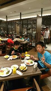 修学旅行も2日目になりました。全員元気に朝食をとりました。朝食のバイキングは、英語、中国語の会話があちこちで聞かれる中、マナーよく過ごすことができました。