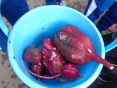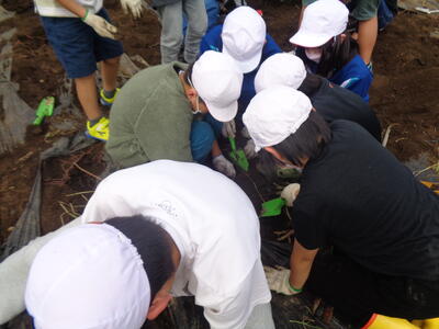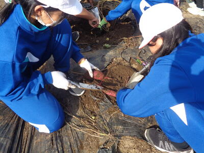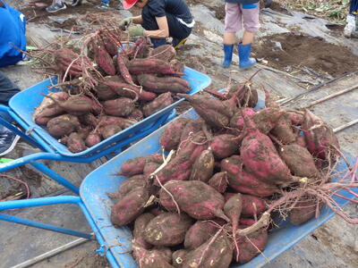 昨年度は不作だったために担当教諭はとても心配していましたが、今年は驚くほど大きなお芋がたくさんとれました。