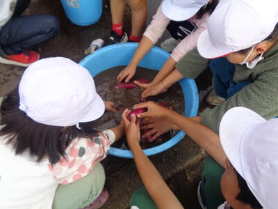 子どもたちの力ではどうにもならず、先生がスコップで応援する場面もありました。子どもたちは大喜びです。