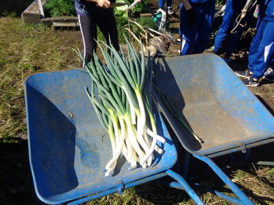 そんな中、2・3・4校時に野菜の収穫をしました。