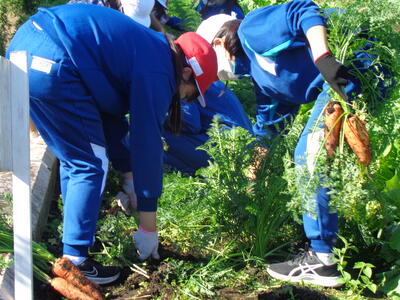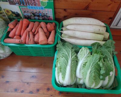 とれた野菜は金曜日に行われる「ひまわり祭」のけんちん汁に使い、残りは片岡調理場に持っていき、給食に使っていただきます。