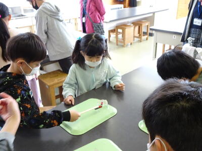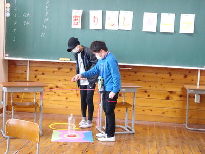 くっつき虫の魚釣り・松ぼっくりけん玉、ピンポンカップイン。スーパーボールつかみリレー、ペットボトルボウリング、黒板アート、わりばしダーツ、お手玉飛ばし、靴下のペアさがし、お話リレー、風船引き、磁石の押し出しずもう、風船バレーボールと、教職員がアイディアを出し合った楽しいブースで、子どもたちはとても楽しそうでした。