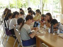プレルボールの後は、ランチルームで親子給食をしました。児童が手際よく配膳をしての会食になりました。