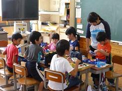 昼食の時間に訪問すると、私にお弁当を見せてくれる児童や担任の先生にお弁当の説明をしている児童、友達同士で見せ合っている児童など、普段の給食では見られない姿を多く目にします。お弁当の持つワクワク度の高さを感じさせます。
