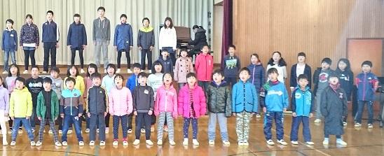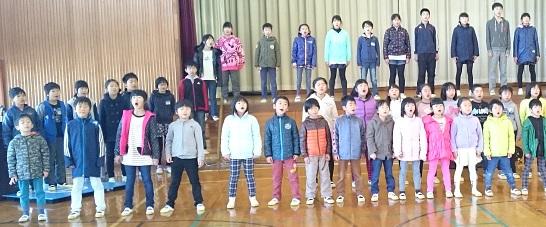 全校合唱最終練習 投稿日時 : 2016/12/08 学校管理者 カテゴリ: 12月8日の朝、学習発表会で行う全校合唱の最終練習を行いました。 ストーブを3台使っていますが、昨日よりも冷え込みの厳しい朝だったこともあり、広い体育館では効果があまり実感できないのが実情です。 本日は、昨日の改善事項に気をつけながら練習をしました。声の出にくい朝一番での練習なのですが、一生懸命に歌っている姿に心を動かされます。乙畑小学校の児童の素晴らしさを改めて感じています。