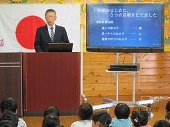 10月7日の昼休みに1学期終業式を行いました。終業式では、国歌斉唱、学校長の話、代表児童による1学期の反省発表、校歌斉唱を行いました。本校の児童は大きな声で歌えるので、多目的ホールに声が響きわたります。学校長からは、「1学期の目標を振り返って、2学期の目標を具体的に計画しよう。」という内容の話がありました。なりたい自分になれるような具体的な目標を秋休みの間に考えられるよう願っています。また、代表児童の発表では、1年生・3年生・5年生がそれぞれ大きな声でしっかりと発表することができました。1年生は原稿を見ながらしっかりと、3年生と5年生は用意していた原稿を一度も見ないで堂々と発表しました。