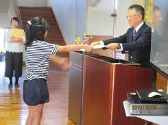 終業式後に、塩谷地区読書感想文コンクール審査の入賞者の表彰と地区学校音楽祭の表彰を行いました。本校からは、塩谷地区の代表作品6点のうちの2点が優秀賞として県の審査へ出品されているほか、優良賞を3名が受賞するという素晴らしい結果を得ています。その後、児童指導主任と学習指導主任からそれぞれ、1学期の総括と2学期に向けての話がありました。