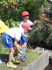 7月9日に1,2年生がザリガニつりに行ってきました。釣り竿をもって元気よくでかけ、たくさんザリガニをつりました。一人2匹だけ持ち帰り、あとはまた自然に戻しました。引率ボランティアさんの御協力もいただき、安全に楽しく実施することができました。ありがとうございました。
