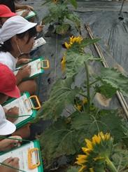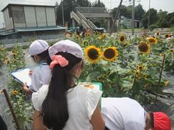 7日(金)にひまわり班活動を実施しました。今まで育ててきたひまわりの観察をしました。遅まきの南側は、きれいに花を咲かせています。北側の花は、枯れているように見えますが、中にぎっしりと種を抱えています。春から育ててきたサツマイモやサトイモの観察もしました。