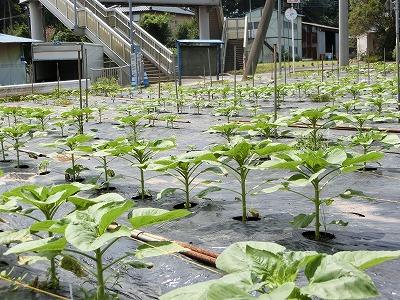 ひまわり畑北側の、秋咲ひまわりもぐんぐんそだっています。子ども達が植えた種です。自分のひまわりに名前がついています。どんな花を咲かせてくれるか楽しみです。