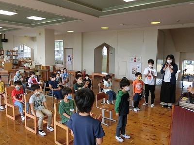 次は画面とじゃんけんです。集会委員5人がカメラに向かってじゃんけんし、5回勝った人は、その教室のカメラから出演!という双方向ゲームでした。一緒にいないけれど、みんなで楽しむことのできた朝会でした。