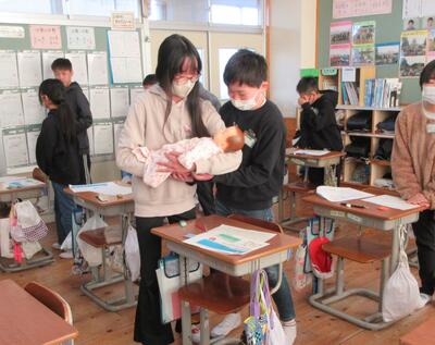 本日、助産師の小堀様を外部講師としてお招きし、思春期教室を行いました。対象学年は6年生です。助産師の仕事の説明・プライベートゾーンや妊娠・命についてのお話をしていただきました。真剣にお話を聞いたり、笑顔で赤ちゃんの人形を優しく抱いたりする姿から、子どもたちが、今日の授業で命の重さを感じてくれたように思います。