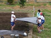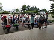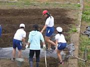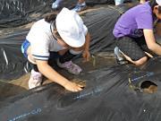曇り空で、湿度も高くなかったこともあり児童は熱心に除草作業をしてくれました。ALTのトム先生も一緒に作業をしてくださいました。また、ひまわり委員は、少ない人数ながら、マルチを3枚張ってくれました。畑にはこれからさつまいもを植え、ひまわり祭の頃に収穫する予定です。