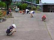 6月5日の昼休み後半は緑の少年団活動でした。本日は、4年生をのぞく児童は花壇や校庭の除草を、ひまわり委員会の児童は校舎裏にある畑にマルチ張りを行いました。