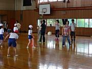 はじめは、親チーム3つと児童チーム3つが対戦し、2対1で親チームの勝利となりました。その後、親子でチームを組み、親子チーム同士の対戦を行いました。