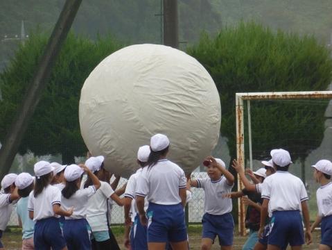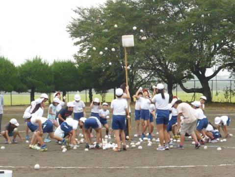 続いて「全校まり入れ」と「大玉運び」の練習を行いました。まり入れは紅組の勝ち、大玉転がしも途中は白組の方が優勢だったのですが最終的には紅組の勝ちになりました。好勝負となるように配慮してチーム分けはしてあるので、今後の白組の奮起に期待したいところです。